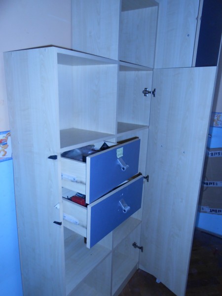 predam zostavu do detskej izby,skrina s polkicami a suflikmi ,rozmery 1,82 m v x 0,80 m š, 29cm h a k tomu skrinu na vesanie .rozmery:1,95m v x 0,80 m š x 52 cm hlbka da sa dokupit aj pisaci sôl v rovnakej farbe rozmery:1m š x 0,78 v x 0,60h.moznosť kúpy aj samostatne cena ,spolu 50€