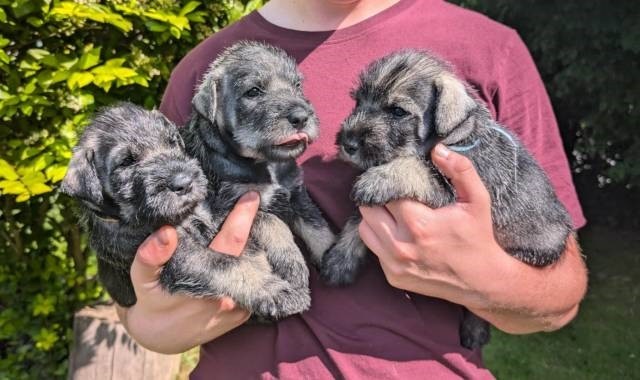 Šteňatá Bradáče stredného korenia a soľ, zdravá,očkovaná, čipovaná . Výborní rodinní psi, hlídači, skvělí společníci pro všemožné aktivity. Rozumná cena dohodou. Štěnata vyrůstají v rod. domě , zahrada, stále s lidmi a dalšími psy. Mají celodenní péči. Rodiče se zdrav. testy, krásný exteriér a vyrovnané milé povahy. Střední knírač se přizpůsobí aktivitám rodiny, je zvídavým parťákem pro každou činnost, inteligentní, veselý a hravý, ale zároveň jsou dobří hlídači. Netrváme na účasti na výstavách ale hledáme dobré domovy. Výbavička do nového domova samozřejmostí, pomůžeme i s dovozem. Více info na tel. +420 603 962 872. lenka.fajkusova@alarmbeskyd.com Jsme dlouholetá chov. stanice www.alarmbeskyd.com