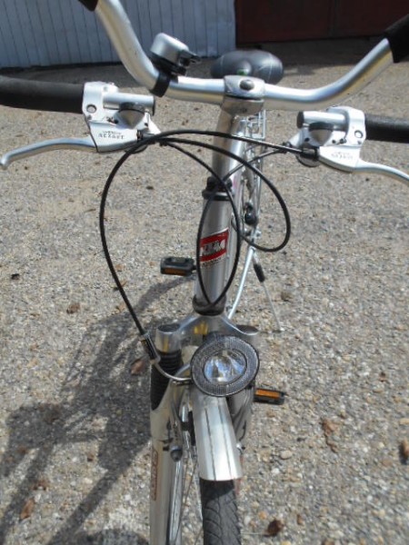 Predám trekingový cestný bicykel KTM – LIFE SPACE, SR SUNTOUR T870 alloy 7005, Made in Austria. Hliníkový rám, blatníky, stojan, zadný nosič. Bicykel je vhodný na mestskú jazdu. Stav: Bicykel je veľmi zachovalý, plne pojazdný. Má bežné známky používania, no funkčne je v dobrom stave. Vonkajšia časť ručiek sa točí. Nedávno naladená zadná prevodovka. Všetko funguje. Výbava: hliníkový rám, 3x7 prevodovka Shimano. Odpružená predná vidlica. Blatníky. Mechanické V-brzdy. Stojan. Cena dohodou. Viac info po tel. Zavolajte alebo napíšte pre otázky alebo záujem.