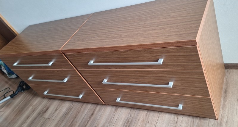 Predam dve rovnake, velmi zachvale komody a nocny stolik. Vyrobene z drevotriesky.