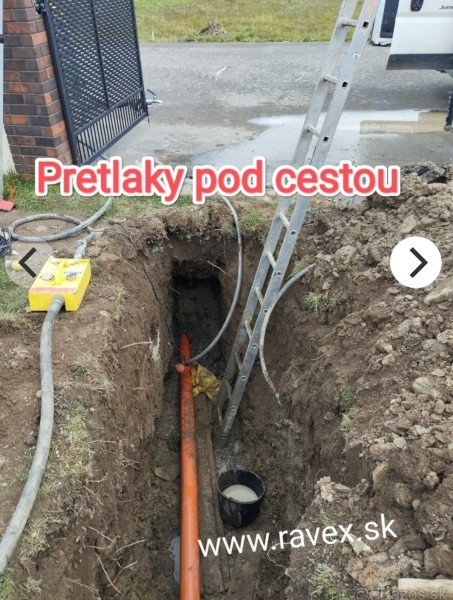 Firma RAVEX Vám ponúka pretláčanie, pretlaky popod cestu, železničné trate, chodníky, dlažby, zatrávnené plochy a následné zavedenie chráničky, do ktorej sa ukladajú inžinierske siete - voda, plyn, elektro, telekomunikácie, odpad z domácich čističiek odpadových vôd a iné.