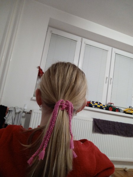 Tento cop je pomenovaný podľa ružovej princesnovskej vlny. Je to na gumičke, tak že dá sa to na vlasy dať ako Dubnička na ktorej sú malé vrkoče.