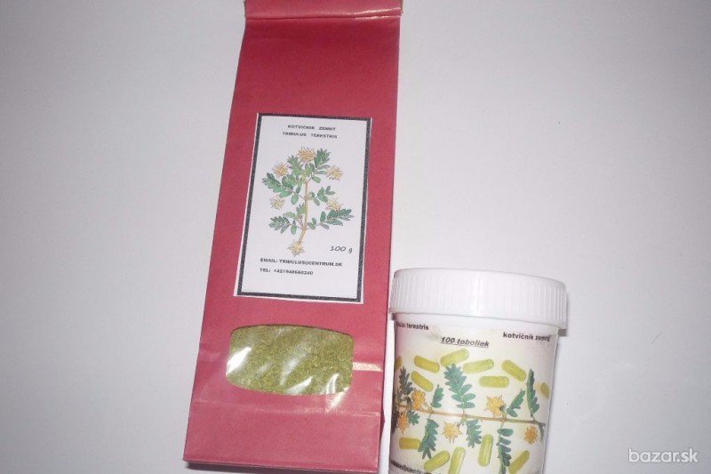 Predám kotvičník zemný z vlastného pestovania, pomletý na prášok, výlučne z mladých rastlín,nebol nikdy chemicky ošetrený, takže je v biokvalite. Od juna je možné prísť k nám a pozrieť ako ho pestujeme a overiť si to.100 g za 7 EUR 100 želatinových toboliek za 8 EUR Tobolka obsahuje len kotvičník, žiadné prímesy. Plus poštovné 2,50 EUR Tribulus Terrestris -Kotvičník zemný ktorý je vďaka vysokému obsahu steroidných saponínov prírodným stimulantom hladiny testosterónu. To prináša okrem zlepšenia libida, zlepšenia nálady i zvýšenie sebadôvery a samozrejme, nárast výkonnosti v silových športoch. Medzi ďalšie účinky Tribulus Terrestris patrí znižovanie hladiny tuku a cholesterolu, napomáha čistiť pečeň a podporuje rozpúšťanie močových kameňov. Tribulus Terrestris je určený na: zvýšenie hladiny testosterónu (až o 30 %) zvýšenie sily a vytrvalosti podporu rastu svalovej hmoty urýchlenie psychickej a fyzickej regenerácie zlepšenie libida (u oboch pohlaví) podporu spermatogenézy zlepšenie metabolizmu navyše má pozitívny vplyv na obranyschopnosť organizmu Doporučené dávkovanie: max. 2 tobolky denne pred jedlom