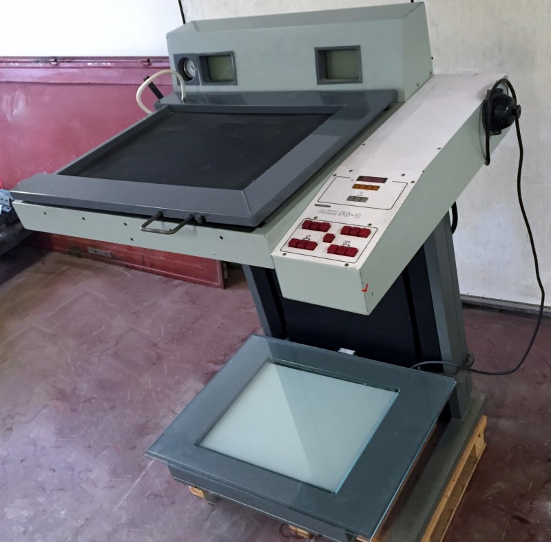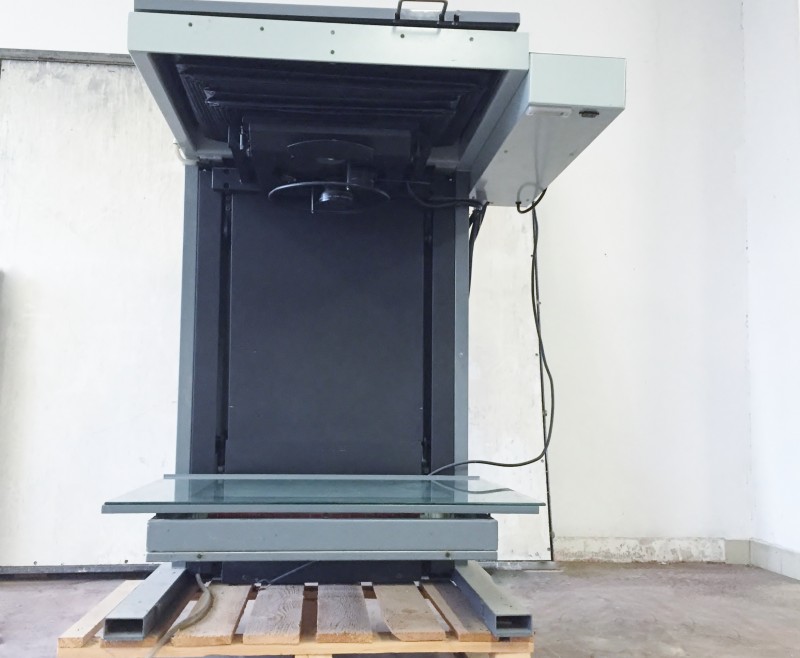 Predám reprografickú kameru vxšxh = 140x100x82cm. Vzdialenosť objektívu od stola je 70cm. Rozmer stola max 85x63cm, min 45x54cm. Priemer objektívov fí1=10 cm, fí2=8 cm.