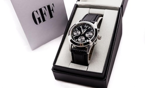 Ideálny darček pre panov na Valentina. NOVÉ elegantne,luxusne vyzerajuce panske hodinky GFF Chronograph .Srdce hodiniek predstavuje hnaci mechanizmus Quartz od renomovanej firmy Seiko.
