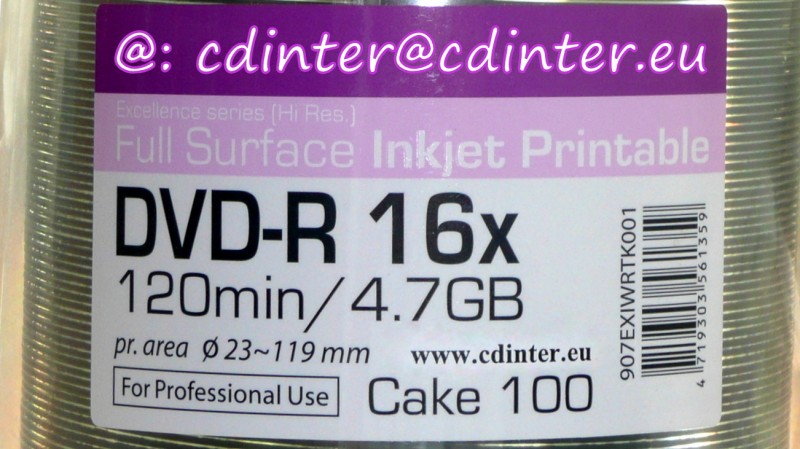 Full face Colour Inkjet printable/plne farebne potlačiteľný k stredu v atramentových tlačiarňach. Médium zaradené do najvyššej kvalitatívnej TOP triedy A Grade. Pre excelentnú kvalitu veľmi obľúbené u profesionálnych kameramanov. Dlhá životnosť, vhodné pre archiváciu.