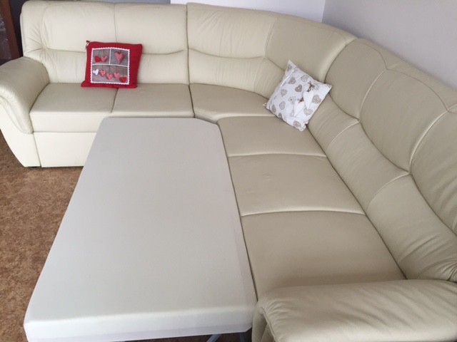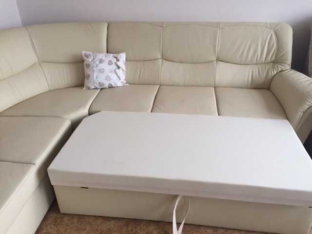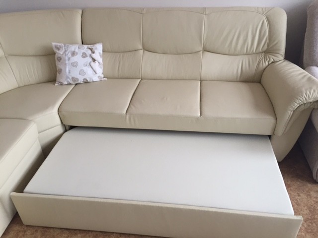 Predám novú sedaciu súpravu z pravej talianskej kože, zadná časť sedacej súpravy je čalúnená látkou. Sedacia súprava je rozťahovacia s úložným priestorom.
