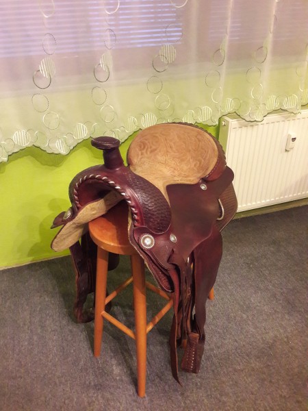 Predám westernové sedlo značky Red Horns Texas saddlers veľkosť podsedlia 16 palcov, kostra je drevená, kvalitná hrubá koža. Kupované pred 2 rokmi (dovoz z Talianska). Sedlo je skôr na širšieho koňa. Sú na ňom bežné známky používania. Predávam ho z dôvodu že potrebujem užšie. Možná výmena za sedlo čo by sedelo na kríženca araba. Cena dohodou. Viac info cez mail.