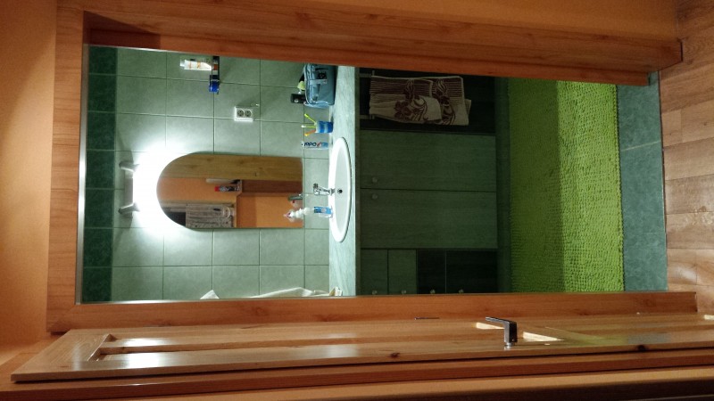 Z kuchyne sa ďalej prechádza do obývacej izby a do kúpeľne s veľkým sprchovým kútom a samostatnou toaletou. Obývacia izba je dostatočne priestranná na spoločné rodinne večeri.